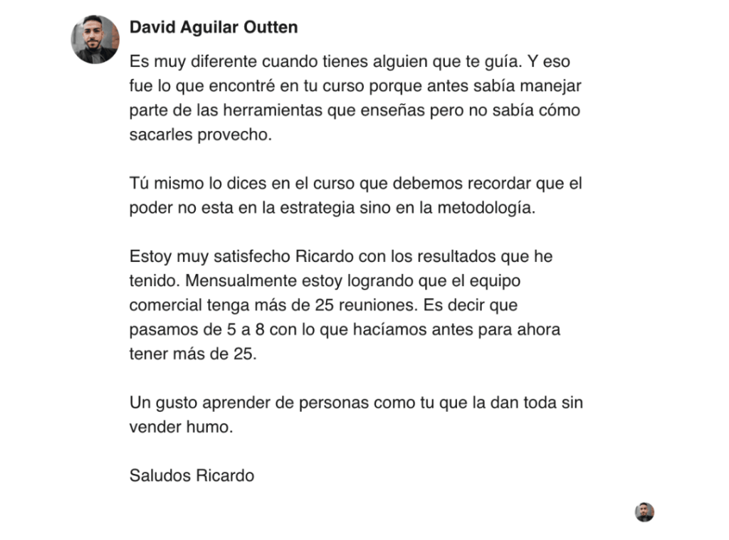 - Canal comercial orgánico y consistente. Que LinkedIn genere reuniones de forma predecible, sin depender de la suerte ni de los picos de actividad.