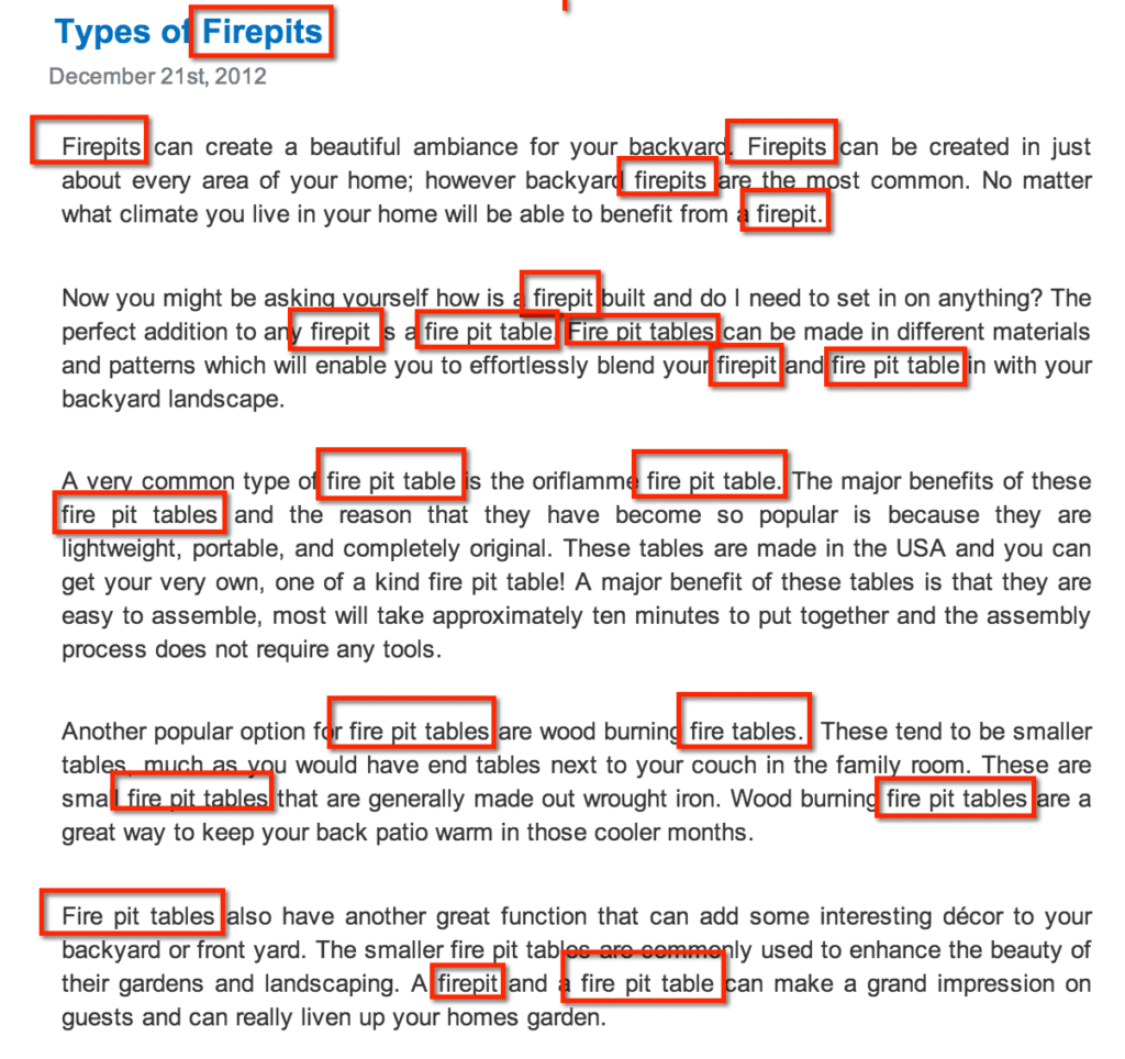Repetir una misma palabra clave muchas veces dentro de un texto sin que tenga sentido (keyword stuffing). Te damos un ejemplo: